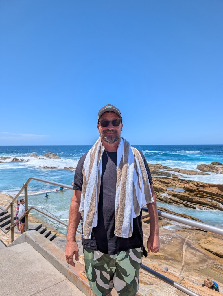 I’m always up for a dip in the ocean, and was constantly pestering Bernie to drive by the beach whenever we were near one. My favorite swim (and Cherie’s too I think) was at the Bermagui Blue Pool. It is a beautiful man-made pool that is filled/refreshed with sea-water during high-tides. When we were there the tide was pretty high, and it was exhilarating watching the big waves come in and toss the pool water like a washing machine as we fought to stay above the churn. On our way out, on the other side of some rocks from us, we watched a bob of seals bobbing happily along in the surf as well.