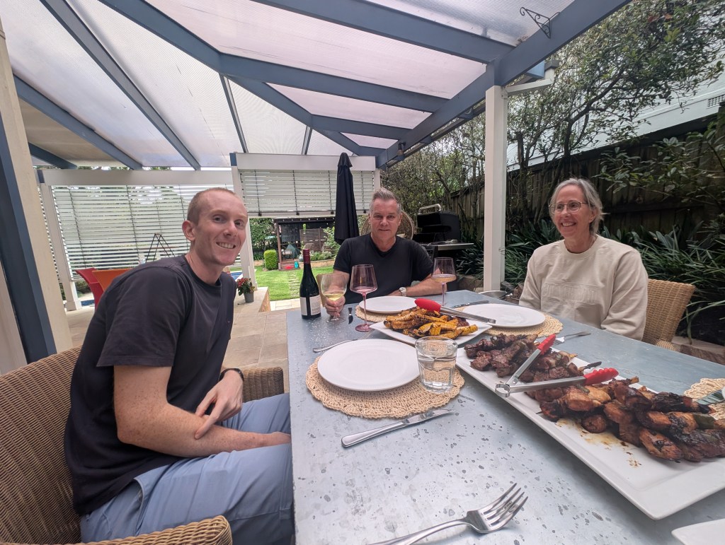 Cherie, Bernie and I landed in Sydney on Wednesday night and were hosted by Bernie’s brother John. He has a beautiful home in North Sydney, and he and his son Matthew prepared us a nice meal of lamb, sausages, and watermelon salad (paired with a fine selection of wines) as we unwound from our three day road trip. Cherie and Bernie had to return to Melbourne the next day, but I continued to stay with John until I left for Bangkok on Saturday.